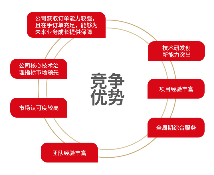 公司以自有核心技术为基础,二十余年水环境治理经验为依托,从系统的角度不断优化创新核心技术及服务,构建起“咨询、设计、制造、实施、运营”全生命周期的综合管理服务体系,在流域规划治理、城镇及园区污水处理设施建设及提标改造、河湖景观水质提升、黑臭水体治理、农村污水治理及循环水系统处理等领域具有较强的市场竞争力。